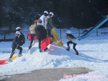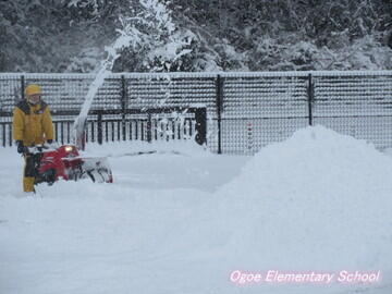 校庭は、いつものように事務の先生が除雪機を使って「山」を作りました。