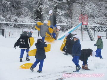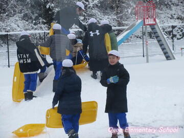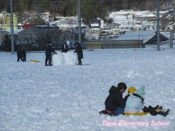 今朝の最低気温は、-10℃になりました。寒い一日ですが、風がないのでお昼休みは絶好の雪遊び時間です。