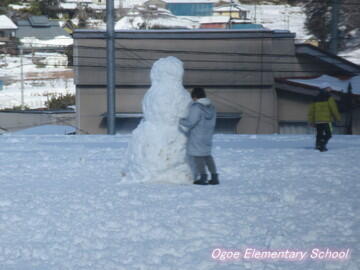 校庭の東側には、高学年の子どもたちが作ってくれたであろう3段の雪だるまも出現しました(^o^)