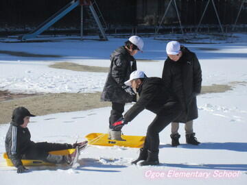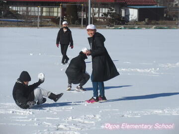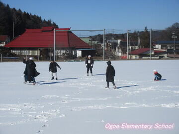 寒さが厳しい時期は、校庭も凍っていて雪遊びに最適です。ただ、積雪が少しなので・・・。