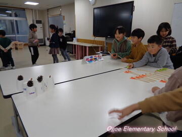 1年生は、生活科で「秋」を探し、見つけたものも使っておもちゃ作りをしました。