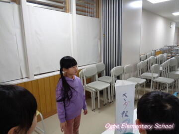 代表児童から社会福祉協議会へ「恵まれない方のために」と募金箱をお渡ししました。