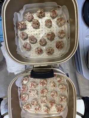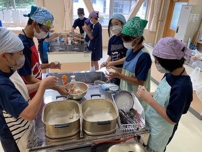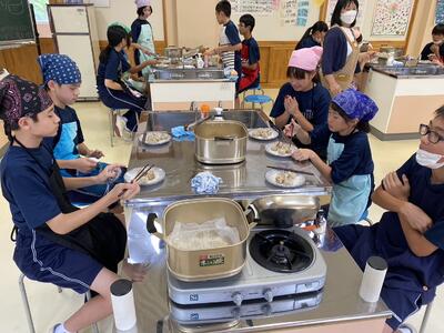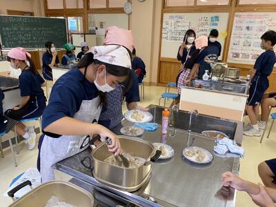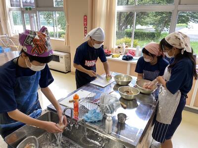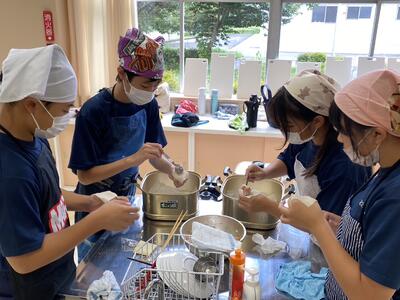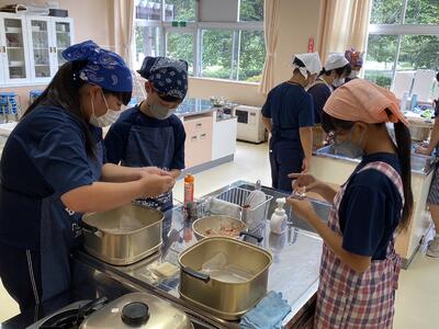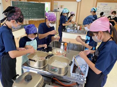 2023年9月20日 12時50分家庭科では、様々な学習の中で調理実習も行っています。今回は1年2組がシュウマイ作りを行いました。まずは肉だねをつくり、それを上手にシュウマイの皮に包みこみ、蒸して完成。とても美味しくできたようです。