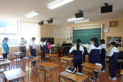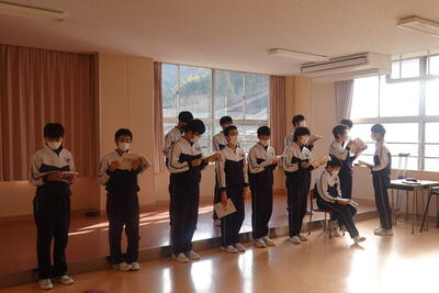 2024年2月1日 17時30分3年生の音楽では、卒業式に向けて歌の練習に励んでいました。今年度から「田村市民の歌」も入ります。今日は、3年生だけが歌う曲のパート練習を行っていました。感動的な卒業式になるよう、自分たちでも盛り上げます!