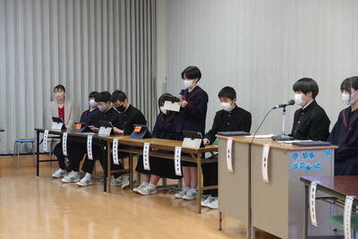 2024年2月8日 18時15分本日、6校時目に後期生徒総会を行いました。後期になり、生徒会本部、専門委員会、部活動が3年生から2年生中心に引き継がれましたが、この総会では、後期の活動報告や会計決算報告が行われました。また、生徒会会則の見直しも行われ、一部改訂されました。