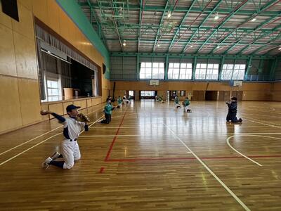 野球部は、2月25日(日)岩江中と体育館で合同練習を行いました。岩江中とは合同チームで大会に出場していますが、合同で行うのは久しぶりでした。春の大会も合同で出場する予定なので、今後、合同で練習する機会が増えていきます。