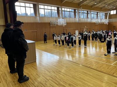 そして、受験を控えた3年生に「挑戦」という熱いメッセージと、さらに「前を向いて歩こう」を急遽、歌ってくれました。「涙がこぼれてもいいから前を向いて歩こう」「幸せは自分の心の中にある」「独りぼっちじゃない」という素敵なメッセージの込められた大好きな歌です。