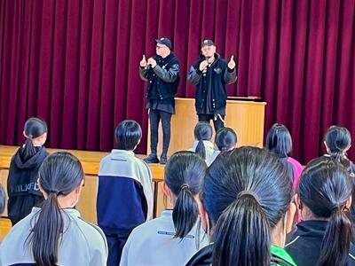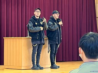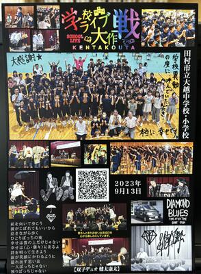 2024年3月1日 17時00分9月13日に学校ライブでお世話になった「健太康太」さんがサプライズで全校集会に登場!ライブの時の写真をちりばめて作成したサイン色紙を全員に届けてくれました。サインは一枚一枚手書きです。