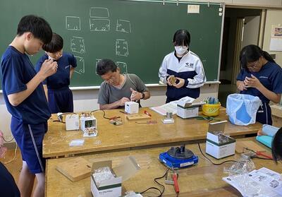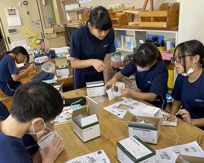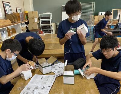 2024年10月2日 19時15分現在、キューブラジオの製作に取り組んでいる2年生ですが、半田づけの作業が終わり、ラジオが完成したようです。完成した生徒は周波数を合わせて、ラジオが聞こえることを確認していました。完成したラジオは、本日持ち帰りますので、どうぞご家庭でご活用ください。