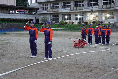 2024年10月29日 16時40分郡山地方広域消防組合大越分遣所の方々にご指導いただきながら行っている軽可搬ポンプ操法の訓練ですが、本日が最後となりました。明日10月30日(水)の避難訓練後に、代表生徒による軽可搬ポンプ操法を披露いたします。生徒たちは、いかなる状況下でも、迅速、確実、そして安全に行動できるように、操作や手順の訓練を繰り返しています。明日の披露をどうぞお楽しみに!