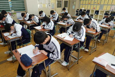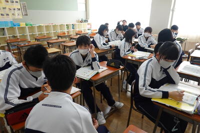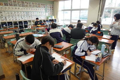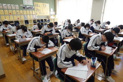 本日の昼休みは、5校時間目に行われる計算コンテストに向けて、多くの生徒が学習に取り組んでいました。特に3年生の教室では、全員が学習に取り組んでいました。さすが3年生ですね!