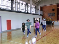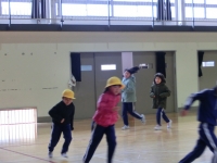 今日は少し小雨が降っていたので、ランランタイムは体育館で行いました。