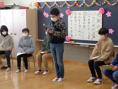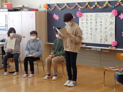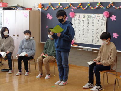 2022年2月19日 16時12分今日は今年度最後の授業参観の予定でしたが、コロナウイルスの感染拡大防止のため、6年生のみが実施になりました。6年生の授業参観は総合の「感謝の会」でした。今までお世話になったおうちの方へ手紙を読んだり、6年間の思い出発表をしたりしました。笑顔と感謝の輪が広がる思い出に残る時間になりました。