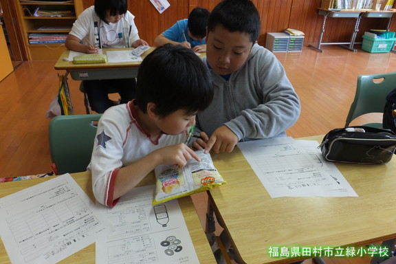 子ども達は、普段食べているおやつにどんな成分が含まれているかを調べ、