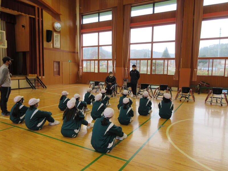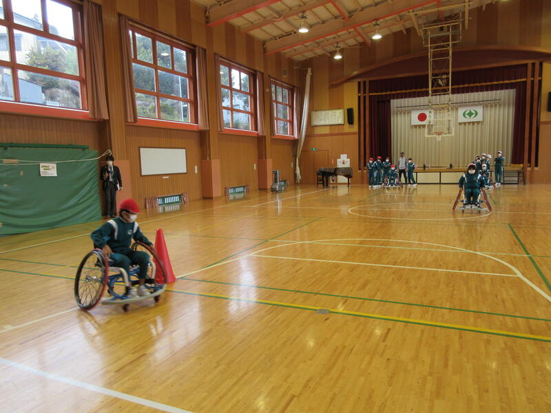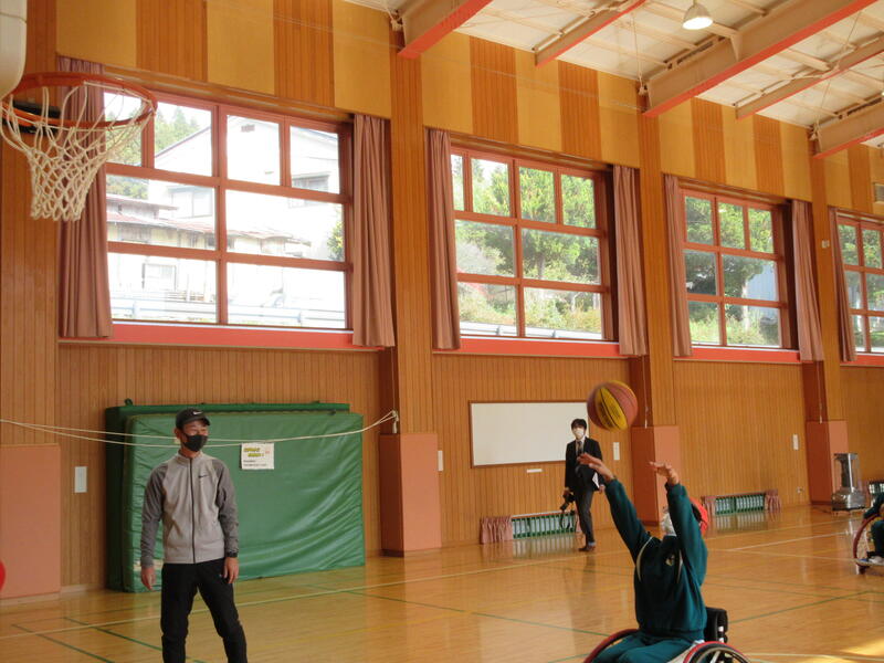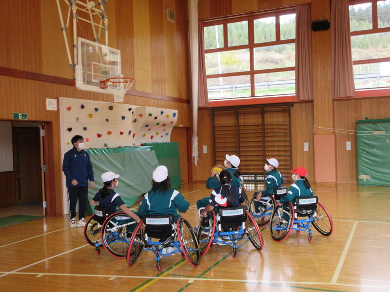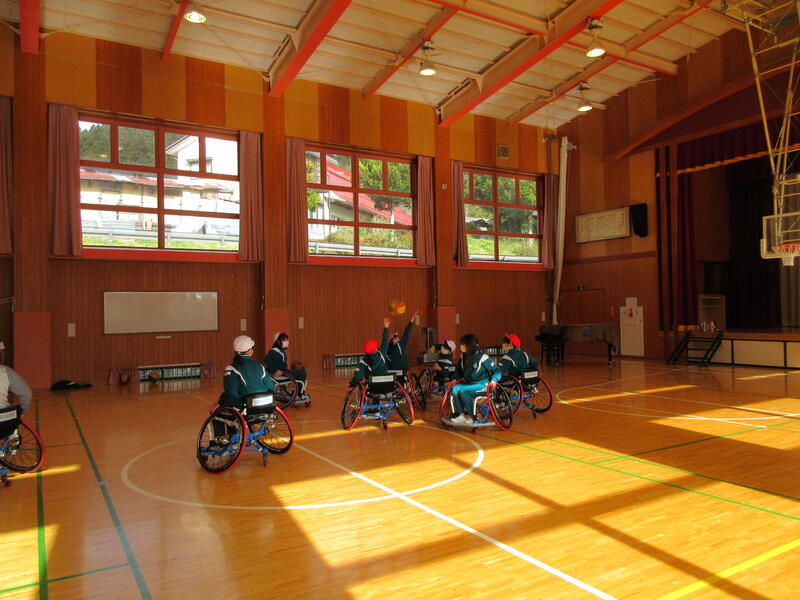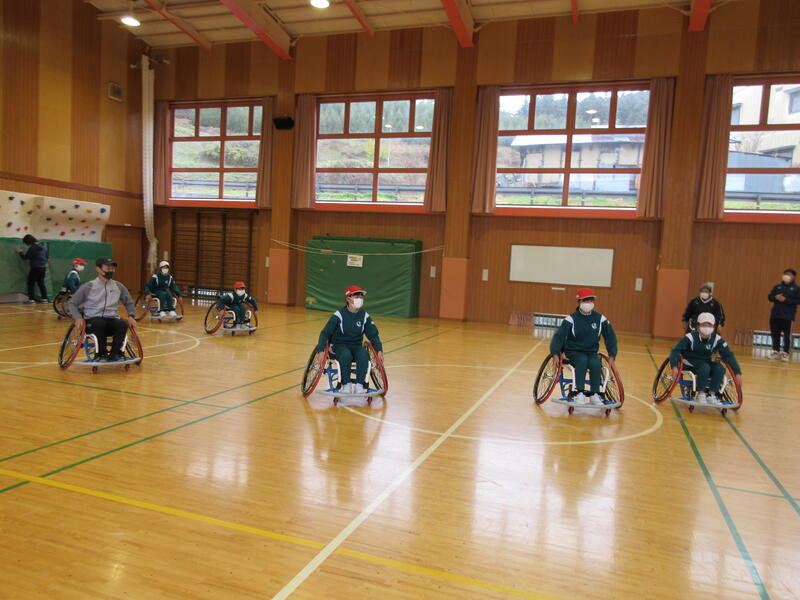 今日は、5・6年生を対象に車椅子バスケット体験がありました。県の障がい者スポーツ協会より、3名の講師の方においで頂き、子どもたちに車椅子の扱い方や車椅子バスケットについて教えて頂きました。今回の学習は、オリンピックやパラリンピックについての理解だけでなく、「共生」についても考えるよい機会となりました。