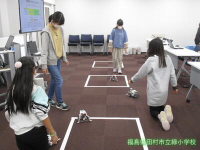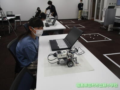 2021年11月30日 17時20分今日、6年生のみんなが、コミュタン福島にて「プログラミング」の授業を受けてきました。パソコンを使って、自分の指示どおりにロボットを動かす「おそうじロボット作り」に挑戦です!