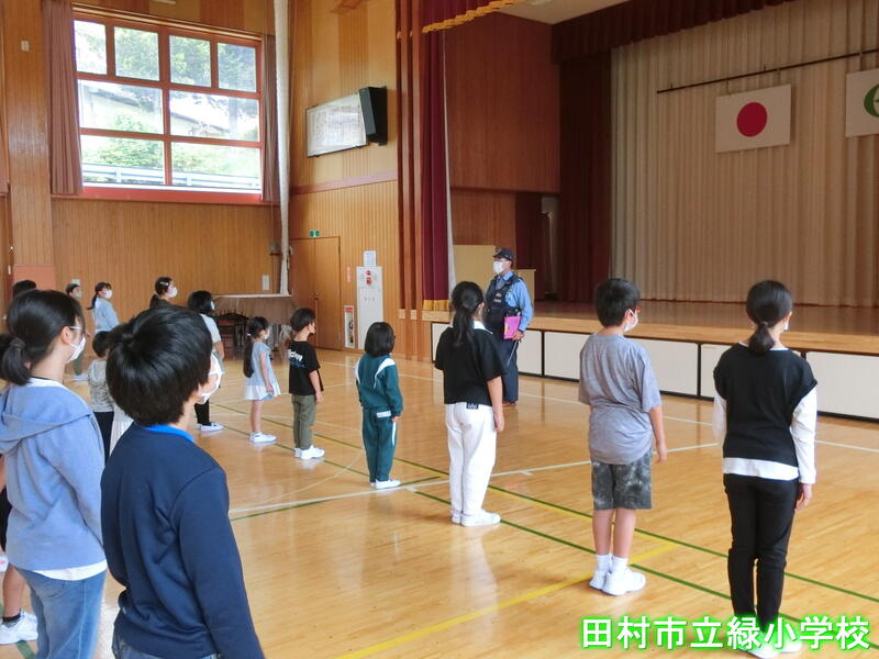 不審者から身を守るための訓練(防犯教室)を行いました。子どもたちは、放送の指示に従って素早く、安全に避難する練習をしました。また、職員も、子どもたちを守るためにどのように対応したらよいかを学びました。