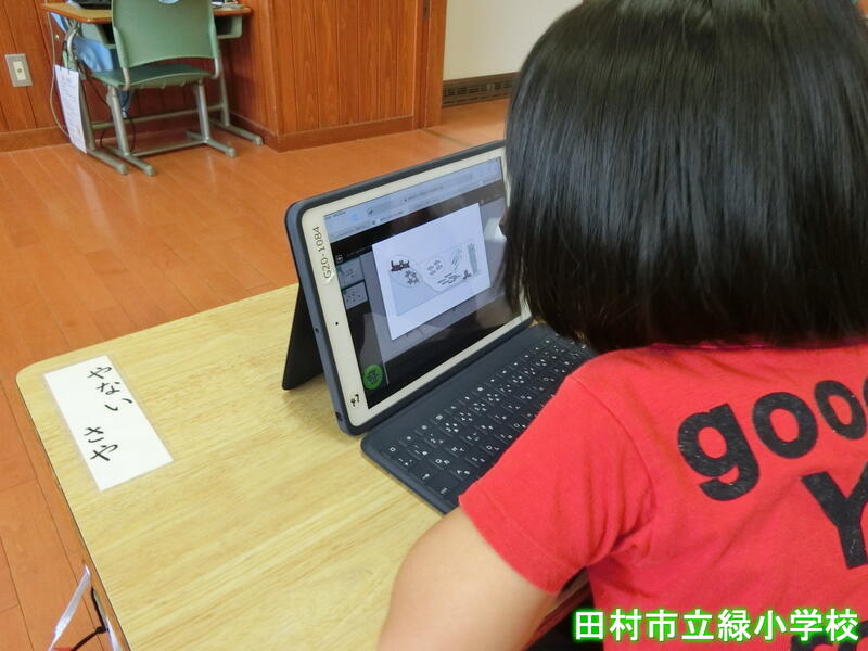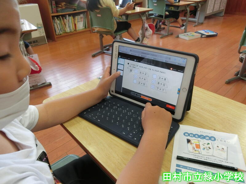 算数の授業(今日)の様子です。タブレットドリルで復習したり、長さや分数の学習をしたりと、それぞれの学年に応じて一生懸命勉強していました。