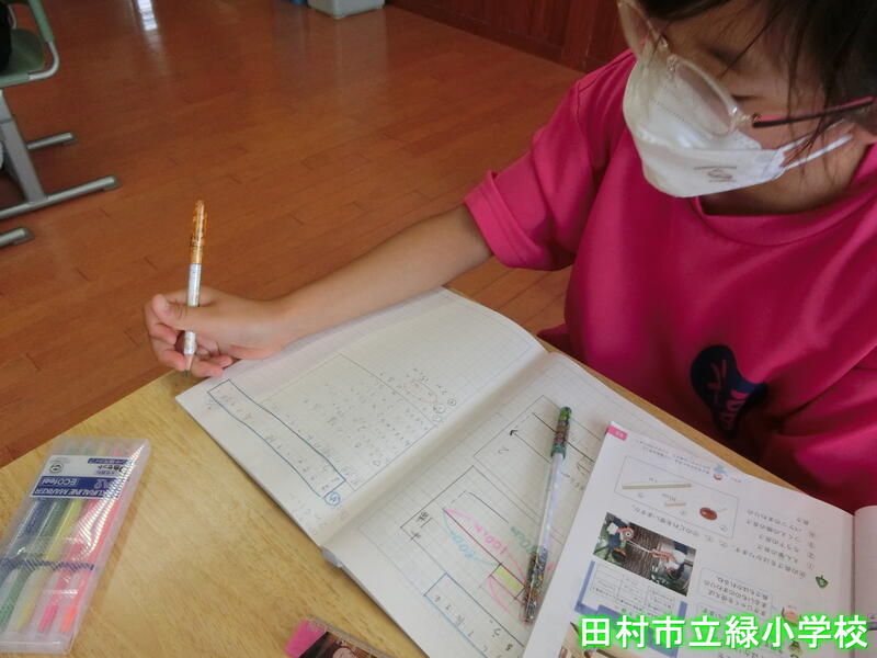子どもたちは、自分の考えを表現し合ったり、実際に測ってみたり、なぜそうなるのか(理由)を説明したりしながら、思考力・判断力・表現力を鍛えています。