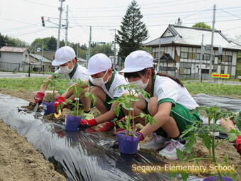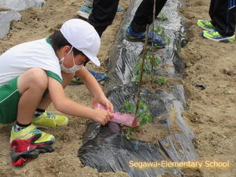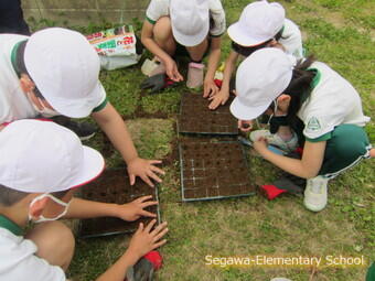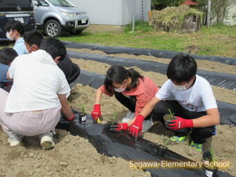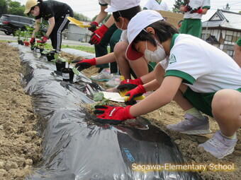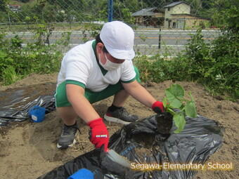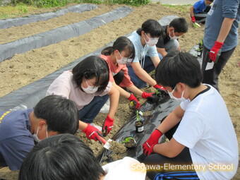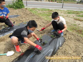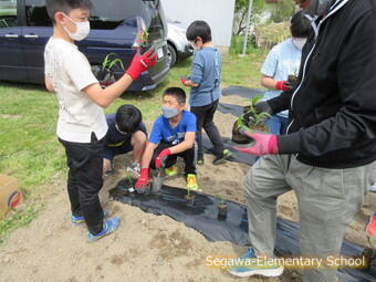 2022年5月13日 08時15分瀬川小学校は、校庭南側に畑を持っています。