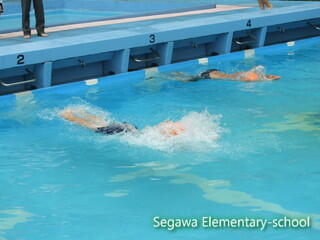 水泳記録会には、56年生の部で25m×4リレーを行うことになりました。がんばれ!