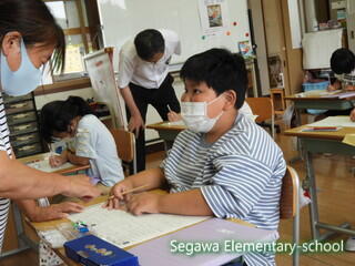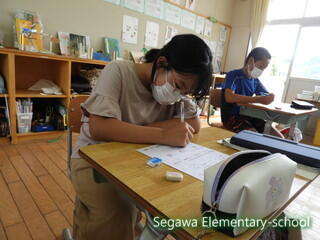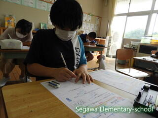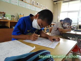 各学年ごとに設定された問題プリントを解いていきます。つまずいているところは担任や担任外の教員に支援してもらいながらがんばっています。