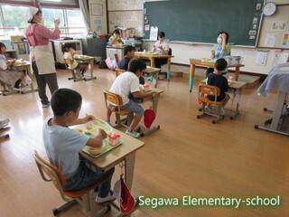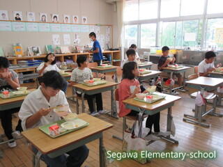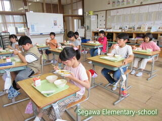 今日は、給食センターの栄養技師と実習生2名が来校しました。配膳を見ていただいたり給食をいっしょに食べたりしました。