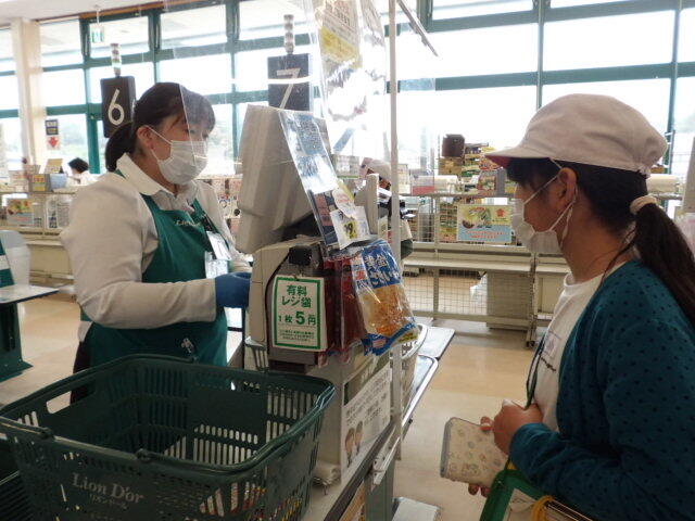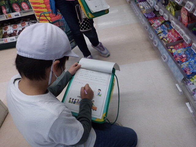 最後にお買い物体験をしました。決められた金額で買えるかどうか、筆算をしながら確認します。