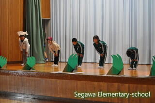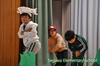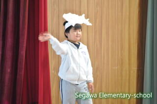 ゆっくり,大きな声で読むことの大切さを学ぶ題材ですので、舞台でもはっきり,大きな声で話します。