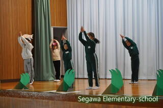 ここは、瀬川小学校の校庭です。先生といっしょに体操をしていると何やら子ども達のまねをする・・・・。