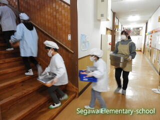 そこで、子ども達の受け取りから給食を食べるまでを記録してみました。