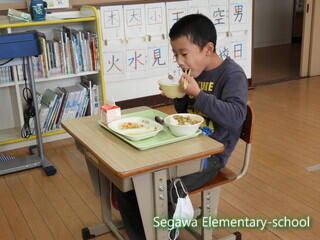食べ終わったら、「美味しい給食ごちそうさまでした!」