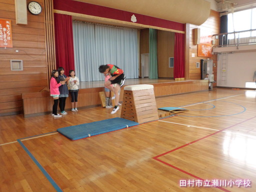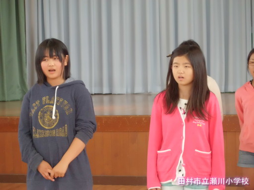 平成27年度、第1回目の全校集会は6年生が発表しました。内容は、ダンス、縄跳び、跳び箱、歌でした。発表を見ていた下学年の児童からは、「きれいな歌だった。」「あんなに踏切を遠くして跳び箱を跳ぶなんてすごい。」といった感想が上がっていました。これからの学年発表も楽しみです。
