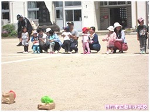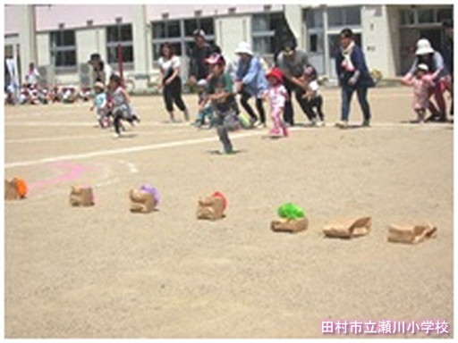 「瀬川なかよし運動会」から1週間が経とうとしていますが、もう一つ紹介したい種目がありますのでお知らせします。それは、「みんなあつまれ~え」という新種目です。対象は、運動会の会場に来てくれている未就学児で、内容はおやつ拾いです。この種目が誕生した背景には、昨年度の運動会での出来事があります。本校でも、多くの学校が行っているように次年度に入学予定の幼児を対象とした「来年は1年生」という種目があります。それを見ていた対象外の幼児の中に「是非、自分も出たい」と親御さんに訴える子がいました。その様子を見て、だれでも参加できる幼児種目を作ろうと思いました。運動会当日は、親御さんと一緒に小さなお子さんが参加してくれました。放送係から名前を聞かれて「○○ちゃんです。」とちゃん付けで自己紹介する子もいて会場が温かな雰囲気になりました。一生懸命走りすぎて転んで泣き出す子もいましたが、「瀬川なかよし運動会」に花を添えてくれました。来年も実施してたくさんの子どもたちが集まってくれたらと思っています。尚、今回の「なかよし運動会」の経費の大部分は、各地区からご支援いただきました。ありがとうございました。
