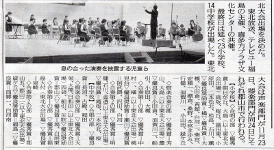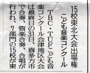 8月31日(日)喜多方プラザ文化センターでTBCこども音楽コンクールが開催されました。本校特設合奏部は合奏第1の部、参加7校のトップバッターとして曲想豊かにすばらしい演奏を奏でました。惜しくも優秀賞は逃しましたが、県内の伝統校大規模校に伍して、実質第4位「優良奨励賞」に輝きました。初めての会場で椅子なども普段と違うなど、子ども達は少し緊張気味でしたが、これもすべてよい経験、糧として次の大会へ向けてさらに音楽性を高めていってくれるものと思います。