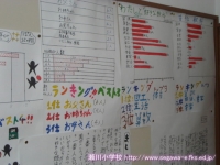 西校舎階段の踊り場にある掲示板を「学びの広場」として使っています。学習に対しての興味・関心・意欲を喚起し学年を超えた学び合いの機会を提供する目的からです。今月は3・4年生が担当していて、俳句作品と調べたことを図やグラフで表現した作品が貼ってあります。俳句を一つ紹介します。「シートしき 桜べんとう おいしいな」春を迎えた喜びが表現されています。好きな教科調べでは、第1位 図工と体育でした。