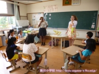 若草学園のカーリー先生とアーシュリー先生がお出でくださって,自己紹介やスポーツの言い表し方を体験しました。スポーツのジェスチャーをしてそれを見て分かった人が手を上げる