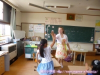 ジェスチャーゲームをしました。最初は、少し恥ずかしそうでしたが,元気いっぱいサッカーやバレーボール,水泳などのジェスチャーをしていました。