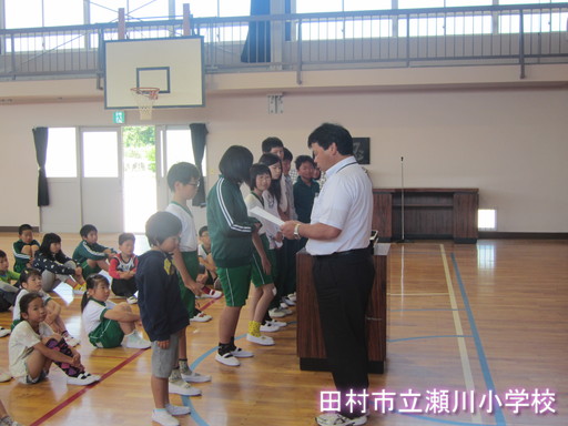 6月1日(月)、全校朝会の中で「よい歯の表彰」がありました。今回表彰を受けたのは、むし歯の治療を終えた児童18名、むし歯も治療歯もない児童9名です。歯は、一生使う大切な物です。歯磨きをしっかり行うと共に、もし、むし歯ができたらすぐに治療を行うように指導しています。昨年治療を終えたのに、今年むし歯ができた児童もいるようです。早めに治療し、歯磨きをしっかりがんばって欲しいと思います。