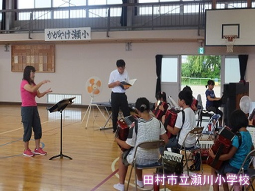 2015年8月17日 14時37分 合奏部は、13日~16日の4日間の休みが明けて、今日は、朝から1日中練習をがんばりました。午前中は、昨年度までご指導いただいた安生先生が、午後は、4年ほど前に瀬川小学校特設合奏部の顧問だった大室先生が来校されご指導・激励をいただきました。瀬川小学校を去られてた今でも、瀬川小学校合奏部を気にかけていただいていることに感謝の気持ちでいっぱいです。明日は、やはり昨年度までご指導いただいていた沢先生にご指導いただきます。