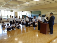 2日間の中体連総合大会への参加、お疲れさまでした。残念ながら県中大会へは出場できないものの、どの部活動でも大変良い試合を見させてもらいました。先ほど、男女ソフトテニス部の部長より「この悔しい気持ちを、1・2年生は新人戦や来年の中体連へぶつけてほしい」という話がありました。ぜひ、新チームでは先輩達の想いも背負って、再スタートを切ってほしいと思います。3年生は今後、地区音楽祭や駅伝大会、紅葉祭、そして高校受験を迎えます。それぞれ新たな目標を持って毎日の学校生活を過ごしましょう。