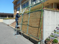 用務員の今泉さんが、アサガオの棚を設置してくださいました。今年もきれいなアサガオが楽しみです。いつもありがとうございます!