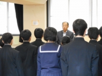 校長式辞では、後期には皆さんの力が試される場面が多くあること、3年生は進路実現、全校では残りの半年を思い出深く、充実した日々にすることを目的として取り組むこと等についてお話しがありました。