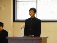 始業式終了後には各学年代表から後期への抱負発表がありました。