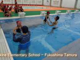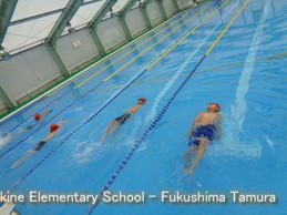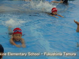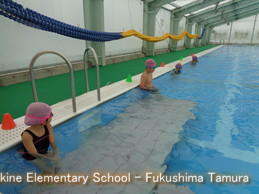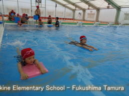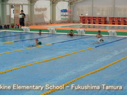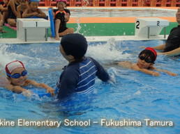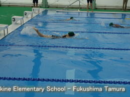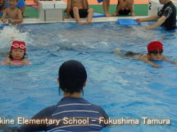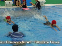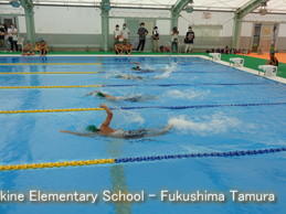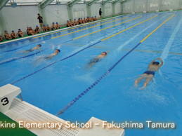 滝根小学校校内水泳大会の最後を飾ったのは2年生でした。2年生は、全員が「13mビート板バタ足競争」と「13m自由形」に挑戦しました。今年はたくさんプールに入ることができたので、みんな果敢にチャレンジしていました。