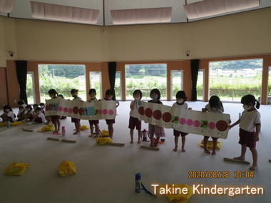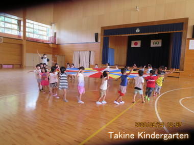 運動会に向けて、バルーンの練習が始まりました。音楽に合わせ、楽しく表現していました。