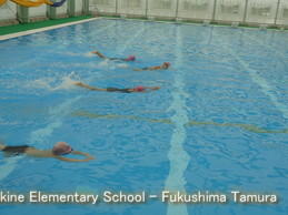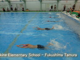 さらに、この13m自由形で泳ぎ切った児童は25m自由形にチャレンジしました。挑戦権を得た児童は17名で、そのうち、なんと10名が25mを泳ぎ切りました。すごいですね。