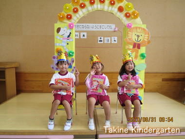 本日、8月生まれのお誕生会でした。お友達から「ハッピーバースデートゥーユー」の曲のプレゼントや先生からのパネルシアター「妖怪じーまん」の出し物のプレゼントを見て、楽しい時間を過ごしました。