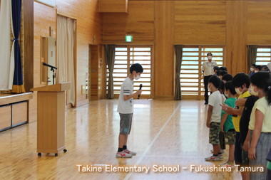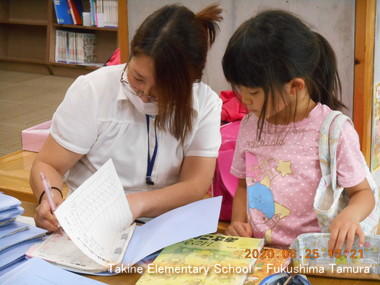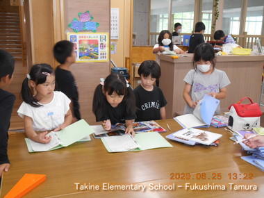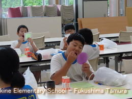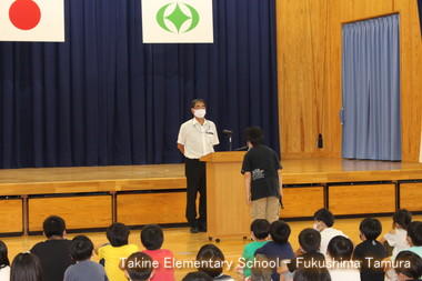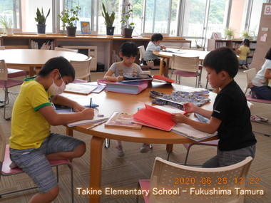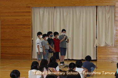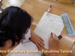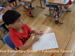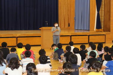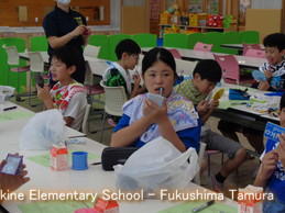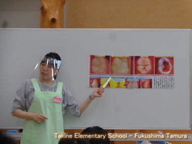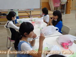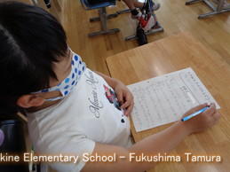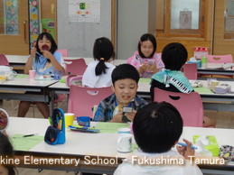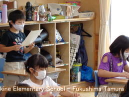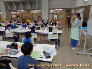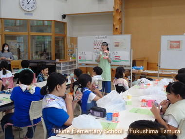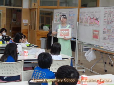 3年生が総合の学習で、滝根町商工会女性部の方に講師として来校いただいて、滝根町名物の1つ「きむコロ」についてお話を聞きました。紙芝居風にして説明していただいたのでとても分かりやすくお話を聞くことができました。最後に子どもたちが分かったことやもっと知りたいことなど感想を述べました。