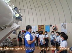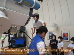 天文台では、館長さんから説明を聞いた後、プラネタリウム館に入り、説明映像をみたり疑似天体観察したりしました。その後は、65cm反射望遠鏡を覗いたり天体観測の仕方を教わったりしました。
